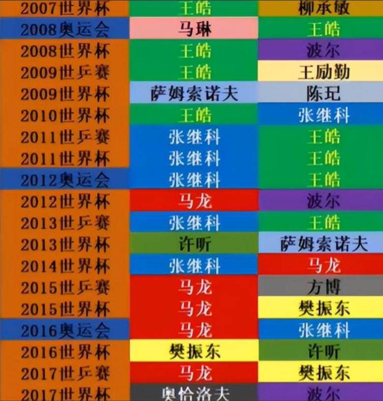 此后2011年世界杯、2012年奥运会、2013年世乒赛、2014年世界杯,都是他摘得了男单金牌。